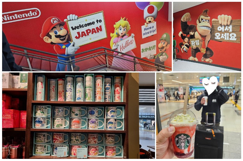 마리오와 동키콩의 환영을 받으면서, 스카이라이너 티켓을 교환해 이동합니다.