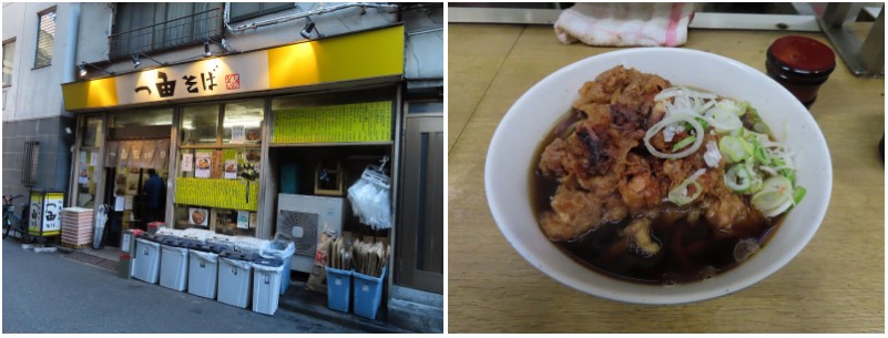 커다란 오징어 튀김이 들어있는 소바가 명물인 서서 먹는 소바집입니다.